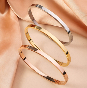 抖音爆款欧美简约金色钛钢手镯冷淡风女款细圆线素圈手环